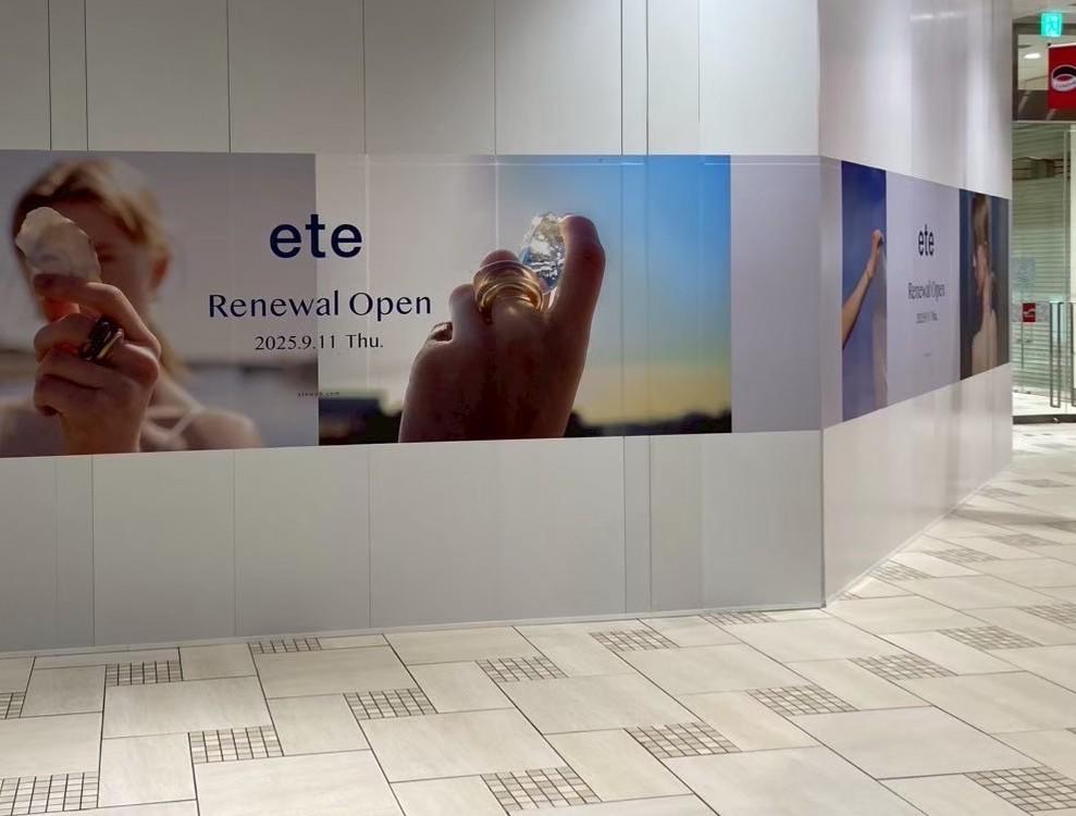例①:通路が狭い店舗前の壁面に設置したパネル 人が肩や荷物をぶつけ、表面に擦り傷ができる。特に買い物袋やリュックが引っ掛かりやすく、角の欠けが発生しやすい。