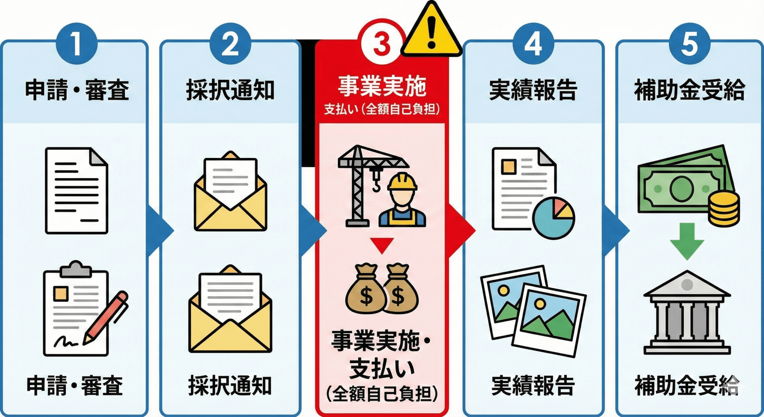 4.知っておくべき注意点:補助金は「後払い」が基本!