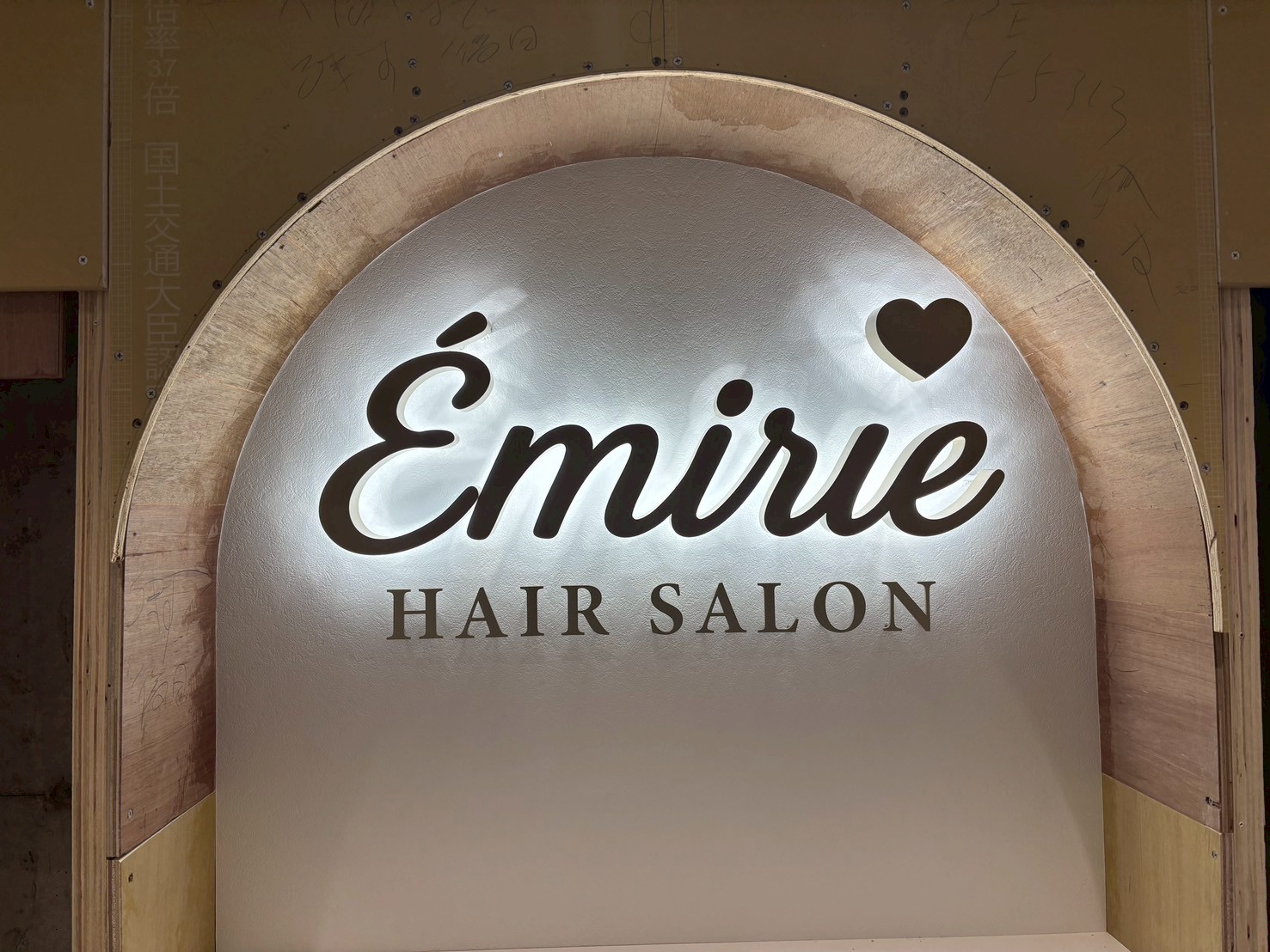 「i」の文字にはハートマークを差し込んで、愛らしくキュートで、看板だけでもおしゃれなヘアースタイルに仕上げてくれそうに、想像してしまいます。