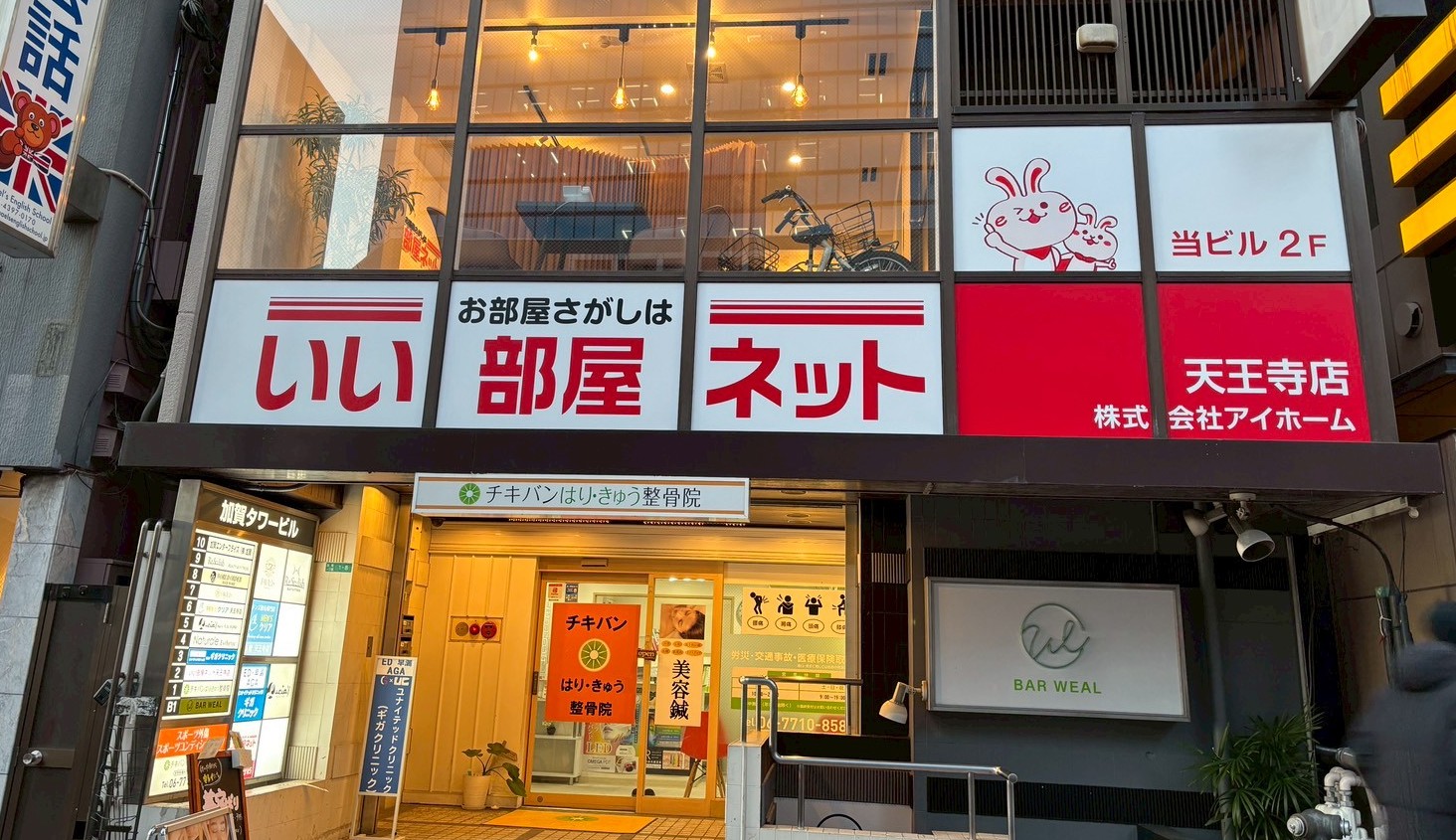 天王寺にあるビル2階フロアに開業されます。交通量の多い公道に面している壁面は全てガラス張りのビルでした。